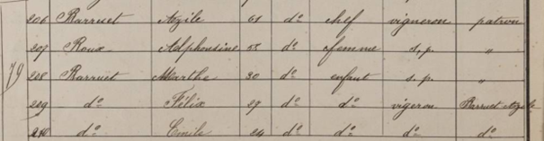 A cette époque, le Haut Thibert est composé d'uniquement 8 foyers, pour un total de 28 personnes en 1881, dont la grand-mère de Jules, Rosalie NOUVELON, alors âgée de 74 ans.