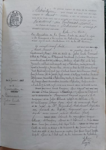 Son décès sera transcrit à la Mairie de Rebréchien le 10 janvier 1917.