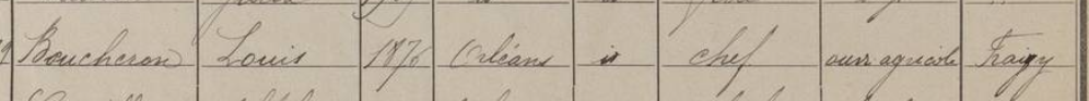 Louis BOUCHERON est originaire du centre-ville d’Orléans. Il nait le 9 janvier 1876 au domicile de sa mère, Rue du Héron (dans le centre, près du pont Georges V). Né de père inconnu, il porte donc le patronyme de sa mère, Marie Virginie Joséphine BOUCHERON, journalière.