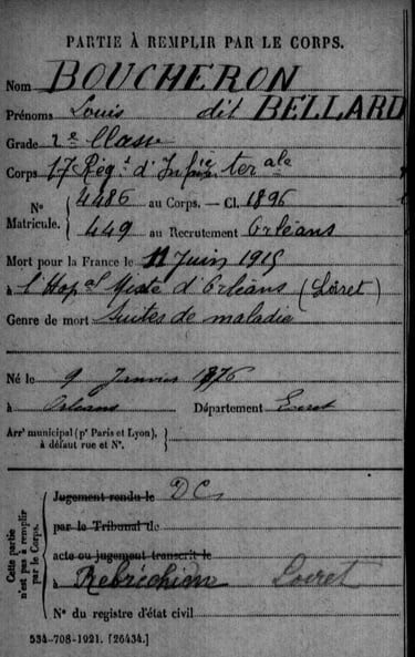 12 Juin 1915 : décès des suites de maladie, à Orléans.