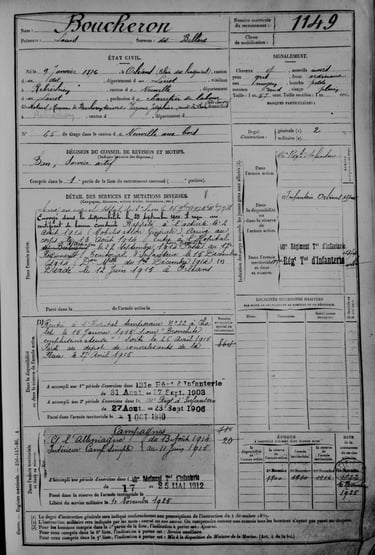 13 août 1914 : arrivée au le 40ᵉ Régiment d’Infanterie Territoriale basé à Orléans, puis départ au front.