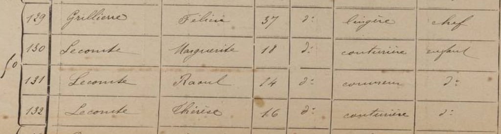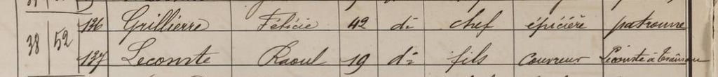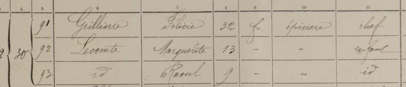 En 1896, Félicie GRILLIERRE vit toujours à Rebréchien (profession : lingère), toujours avec ses trois enfants. Les deux filles sont alors couturières, alors que Camille, 14 ans, fait le même métier qu'exerçait son père : couvreur :