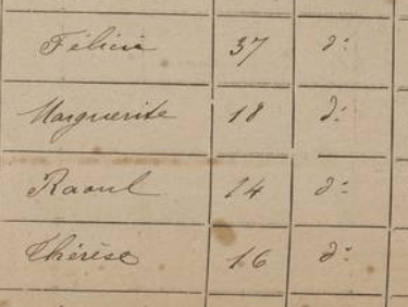 En 1901, Camille (Raoul) est recensé comme vivant avec sa mère Félicie, toujours au Bourg. Toujours couvreur, on apprend que son patron est M. LECOUSTE à Trainou.