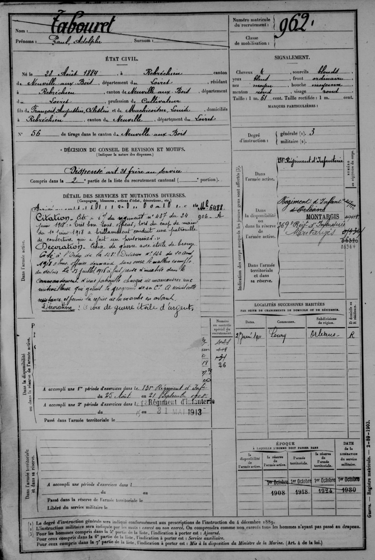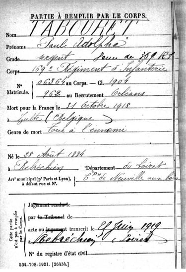 Extrait de la fiche militaire de Paul Adolphe Tabouret
