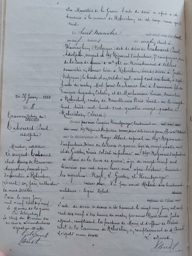 C’est pendant les derniers instants de la guerre que Paul Adolphe TABOURET trouvera la mort au front, tué à l’ennemi le 31 octobre 1918 à sept heures du matin à Zulte (Belgique). Il n’avait que 34 ans, et sera le dernier Rebriocastinois mort au front pendant le conflit.