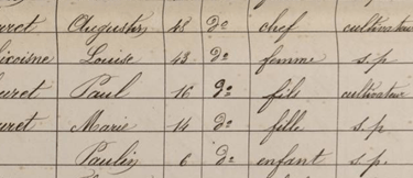 En 1901, Paul a 16 ans, ans et est maintenant cultivateur pour le compte de ses parents. C’est en tous cas ce qui est déclaré au recenseur cette même année.