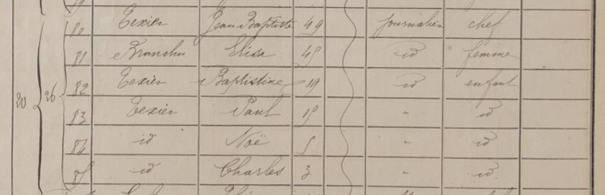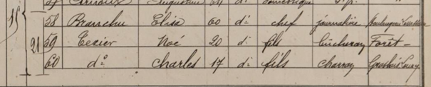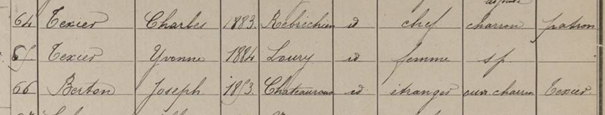 Le couple TEXIER/THUREAU n’a semble-t-il pas encore d’enfant. Charles est charron, vit avec sa femme et également un ouvrier d’une soixantaine d’année, Joseph BERTON.