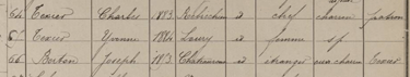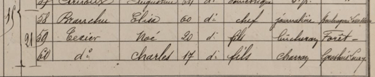 En février 1900, Charles perd sa grande sœur, âgée de 41 ans. Puis l’année suivante, en mars 1901, c’est Baptiste, le père de Charles qui décède, à l’âge de 64 ans, laissant sa veuve Elisa avec ses deux derniers fils, Noé âgé de 20 ans, et Charles qui a 17 ans. Lors du recensement du printemps 1901, on en sait plus sur les métiers de chacun :