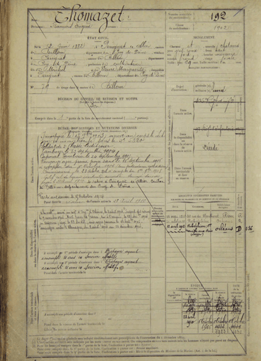 Deux mois après, il se marie, le 18 juin 1910. Il est alors domicilié au 30 Rue du Marthuret à RIOM. Sa femme était débitante (de tabac ?).