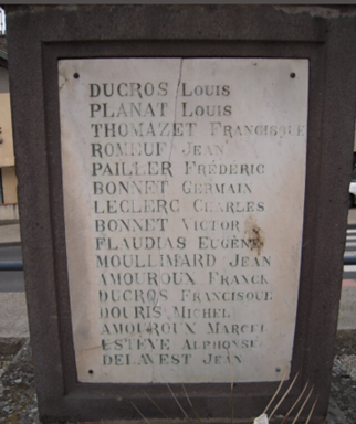 Il apparait sur les monuments aux Morts de deux communes : Pérignat sur Allier et Rebréchien.